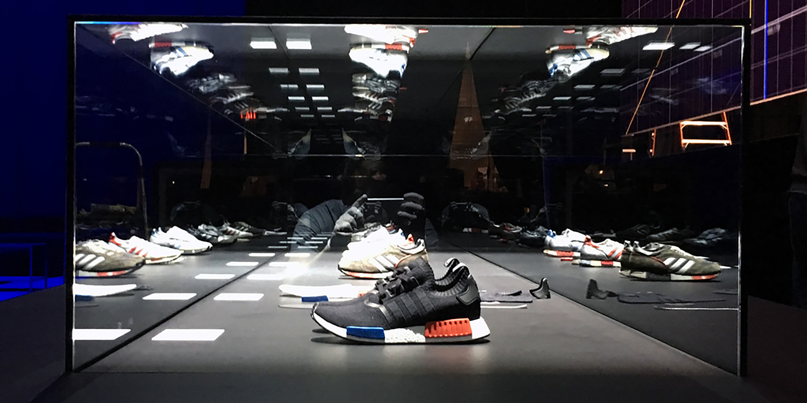 We had a huge pleasure building such a magnificent glass display for an Adidas fashion show at 69th Regiment Armory. It was made from 3/8 thick glass and measured 140 in LONG x 30 in WIDE x 20 in HIGH. Our professional team had to assemble and glue all pieces on site, making sure no spot was left imperfect. We did a beautiful job and this project was completed on time, which was important for such an event.